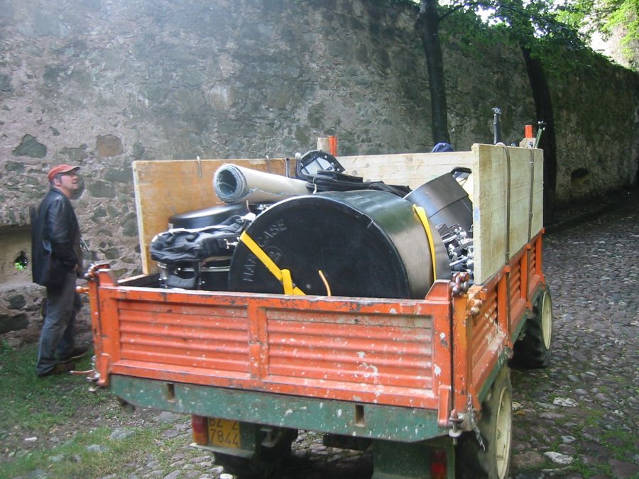Das Equipment wird mit einem kleinen Lastwagen transportiert.